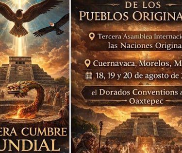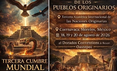 La Tercera Cumbre Mundial de los Pueblos Originarios se llevará a cabo los días 18, 19 y 20 de agosto de 2026, en el corazón de México: el estado de Morelos, territorio sagrado que resguarda la memoria ancestral de Quetzalcóatl, la Serpiente Emplumada. Este evento posee un profundo significado histórico y espiritual, al representar el cumplimiento de una antigua profecía que conecta a tres grandes aves emblemáticas del continente americano: el Cóndor, el Quetzal y el Águila Real.